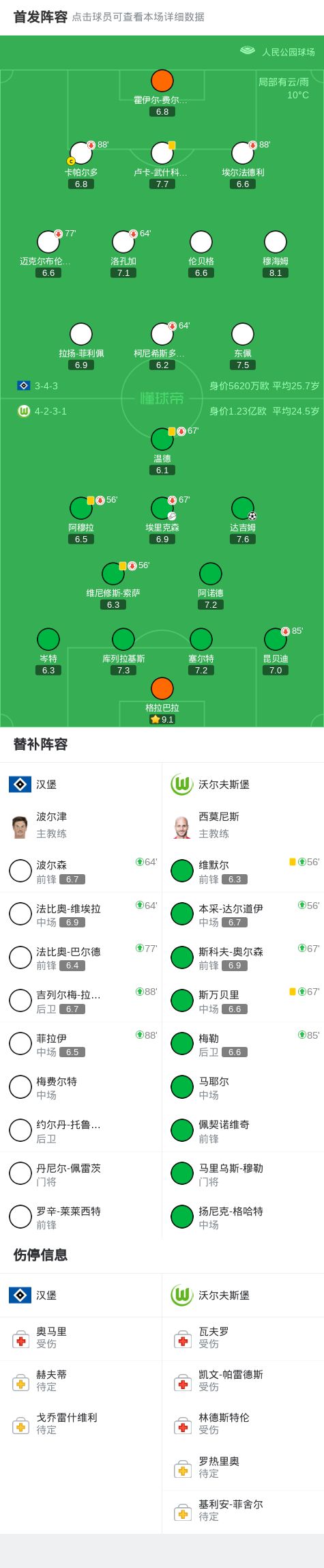 北京时间10月25日德国足球顶级联赛 联赛 第8轮,汉堡主场对阵沃尔夫斯堡。沃尔夫斯堡达吉姆破门。最终比分汉堡 0-1 沃尔夫斯堡。