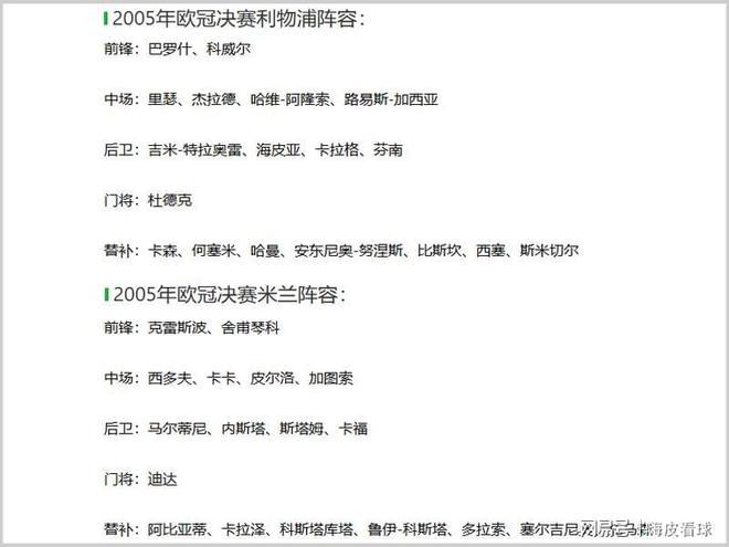 看着当时双方的首发和替补,包括现任皇马主帅阿隆索,现任意大利主帅加图索,传奇射手舍甫琴科,传奇队长马尔蒂尼,还有杰拉德、卡拉格、卡卡、皮尔洛、内斯塔、卡福、斯塔姆等一众知名球星。随着当时相当年轻的卡森宣布挂靴,利物浦在伊斯坦布尔创造奇迹的两队所有见证者,已经全部退役。